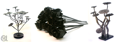 J’utilise mon expérience en dessin pour produire des pièces originales à partir de matières recyclées et d’échanges avec d’autres créateurs.